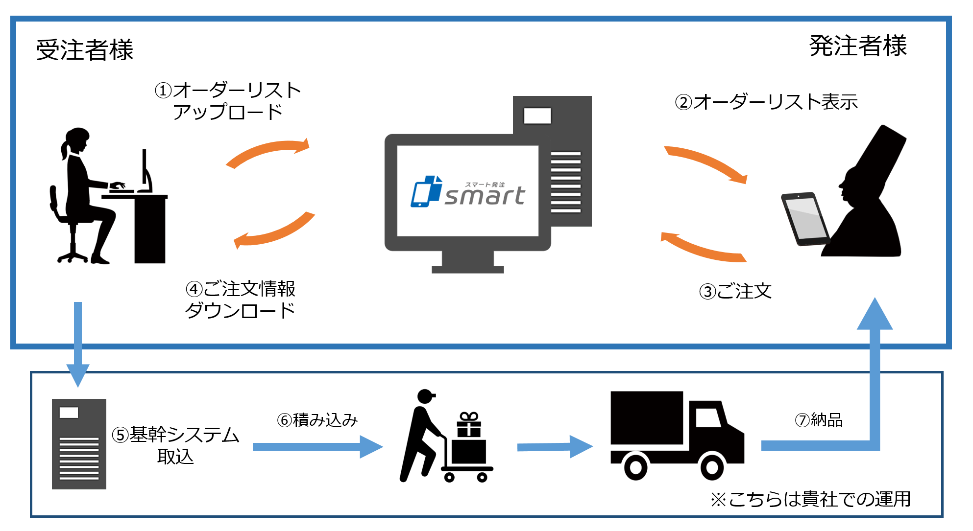 基幹システムの商品マスタの連携等、お客様の運用に合わせてスマート発注をカスタマイズし、ご提供することも可能です。